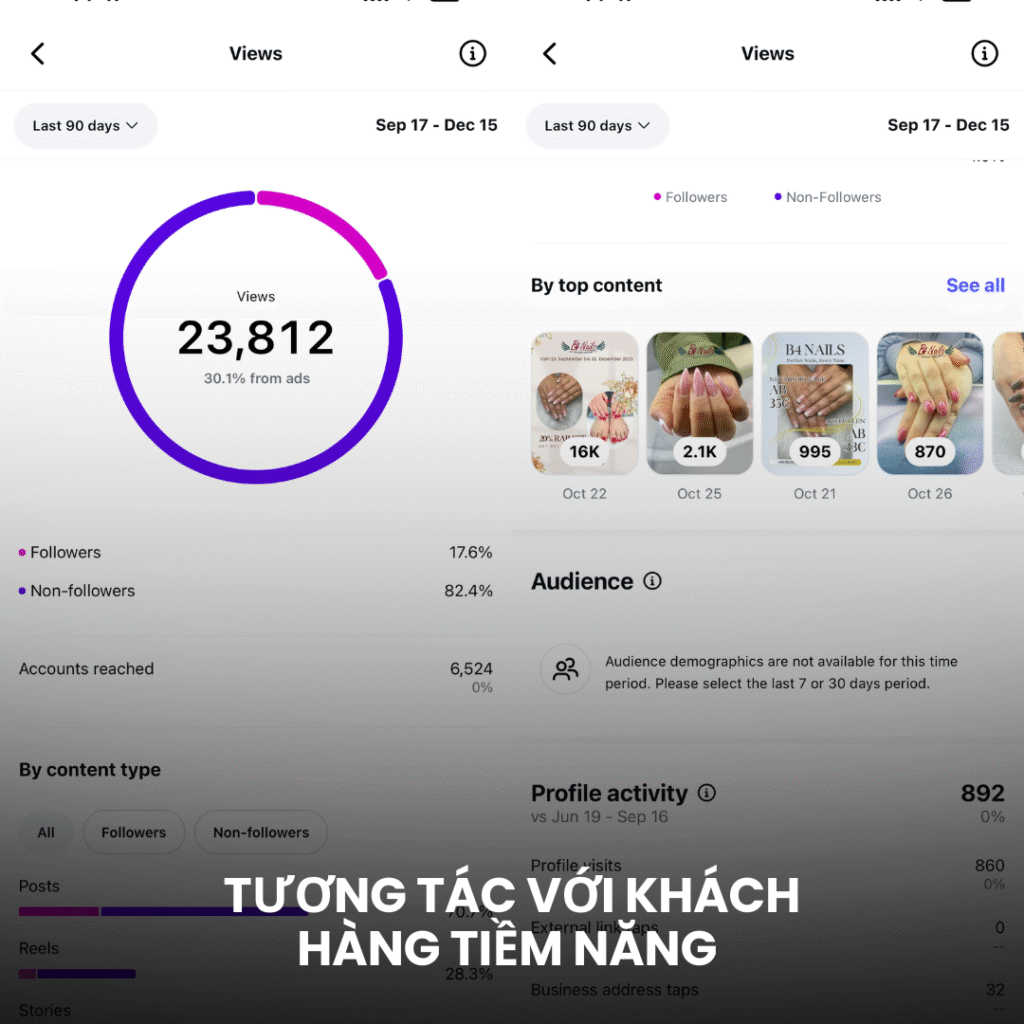 ✅ Thúc đẩy hành động thực tế: Thu hút 892 lượt tương tác trực tiếp vào hồ sơ (Profile activity), bao gồm 860 lượt ghé thăm trang và 32 lượt tìm kiếm địa chỉ doanh nghiệp, tạo ra cơ hội chuyển đổi thành lịch hẹn cao.