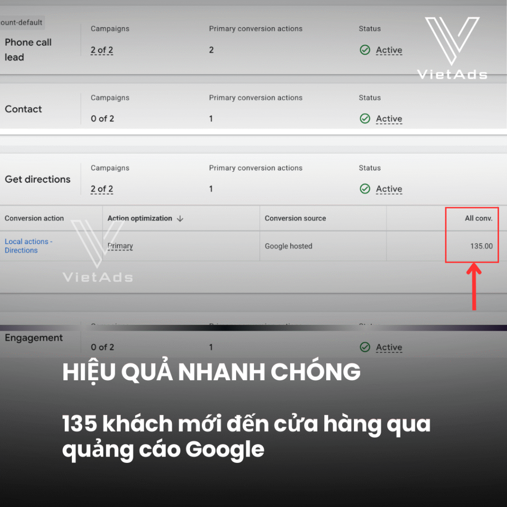 📍 135 khách hàng mới trực tiếp đến cửa hàng thông qua quảng cáo từ Google Maps.