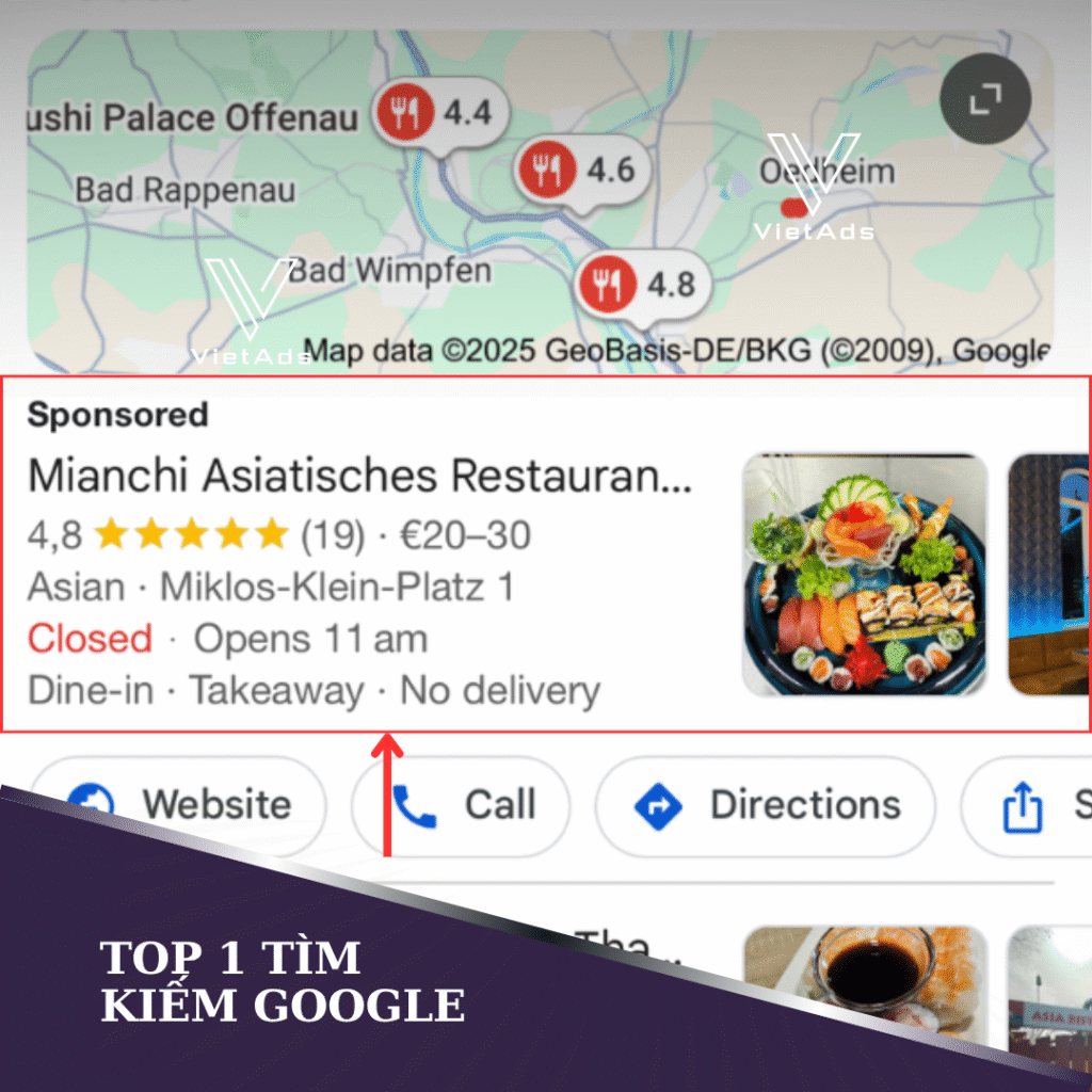 Chạy quảng cáo Google Ads giúp nhà hàng luôn xuất hiện top 1 khi khách hàng tìm kiếm “restaurant neckarsulm”, “sushi bad friedrichshall”